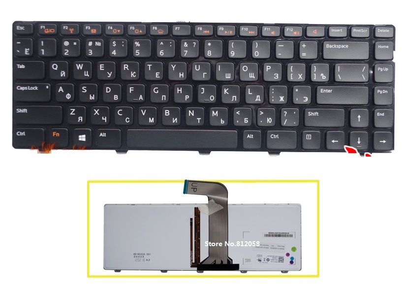 Клавиатура DELL Inspiron N4110 Black, Backlite, RU