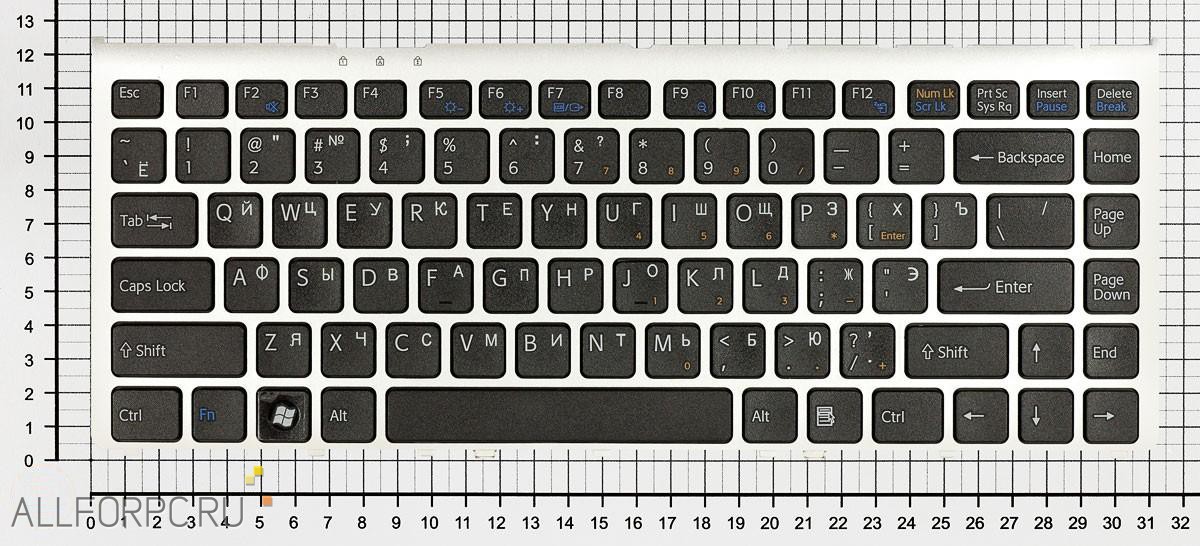 Клавиатура SONY VPC-S Series Black, Frame Silver, RU
