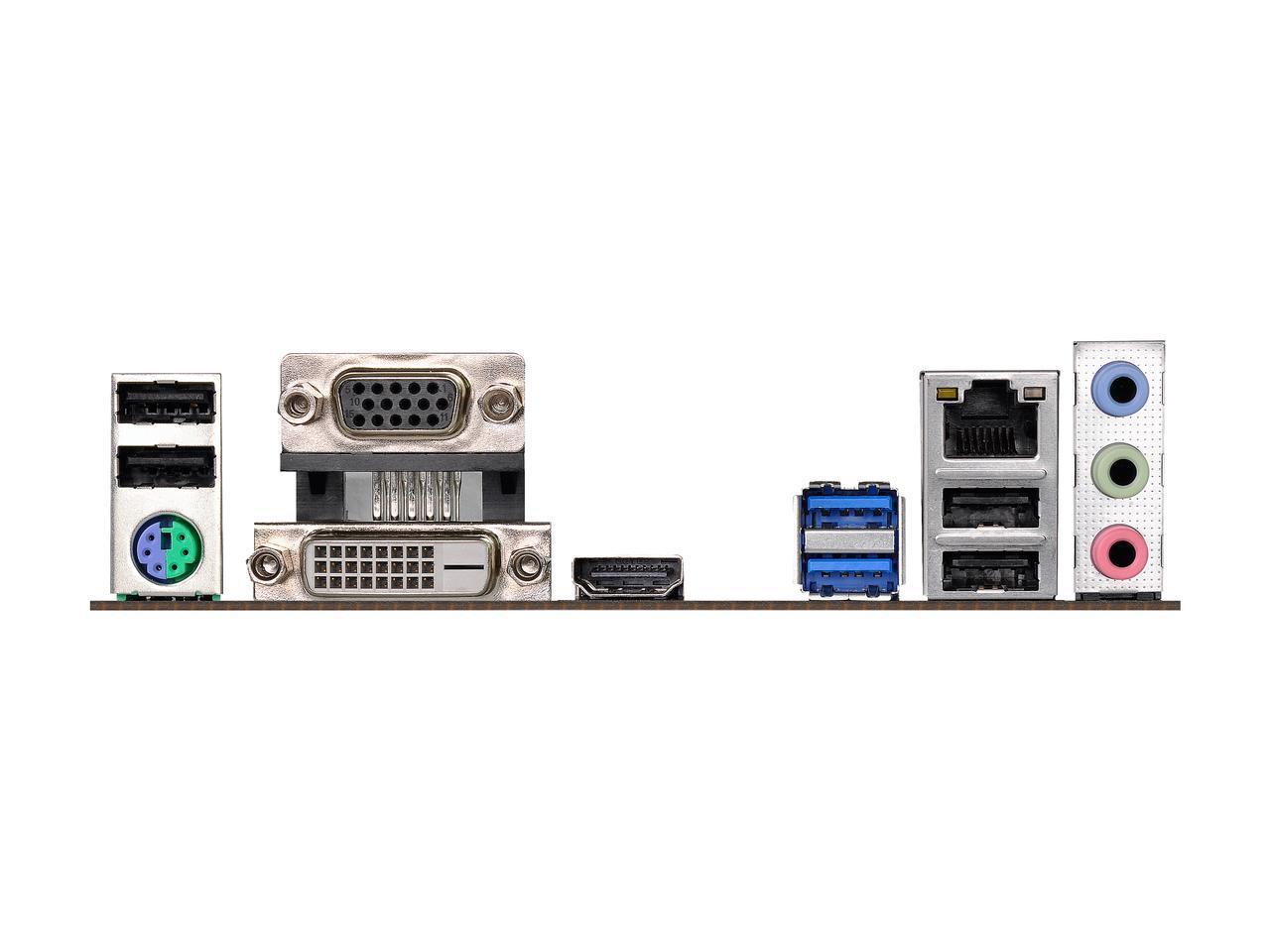 6 USB, из них 4 USB 3.0, D-Sub, DVI, HDMI, Ethernet, PS/2 (клавиатура), PS/2 (мышь) |