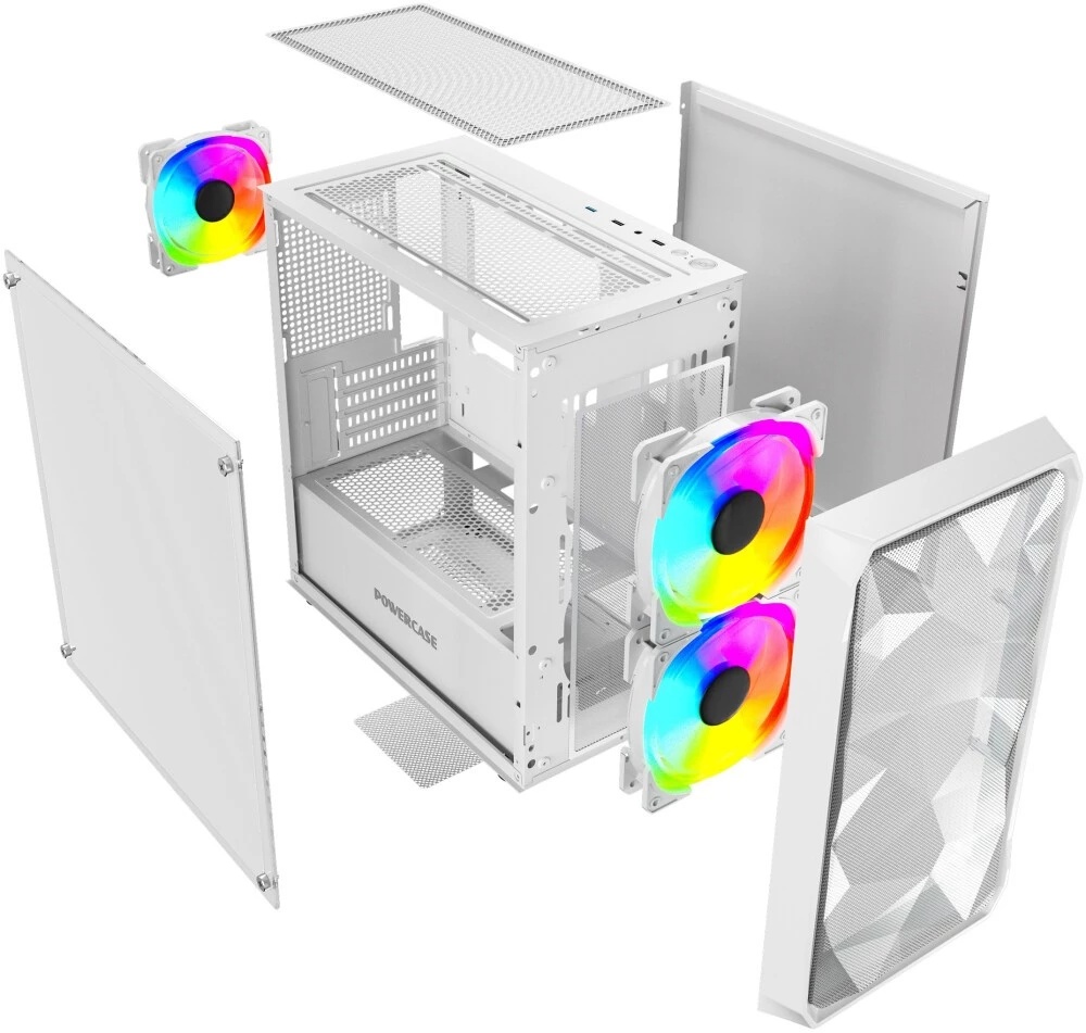 Powercase Micro A3B/W ARGB Tempered Glass, 2x140mm+1x120mm ARGB |